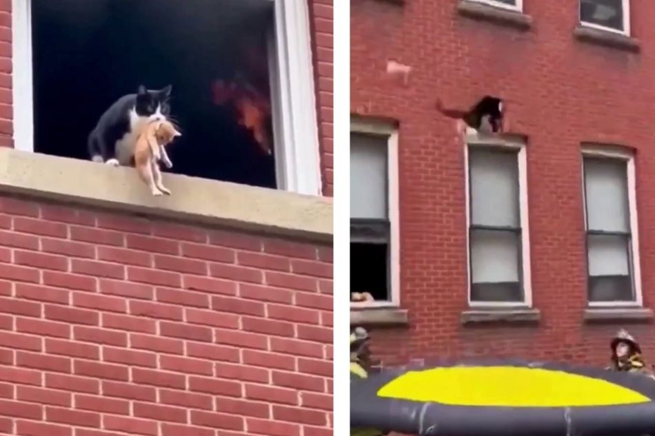 Sebuah aksi penyelamatan mengundang perhatian setelah petugas pemadam kebakaran berhasil menyelamatkan dua ekor kucing dari kebakaran gedung dengan cara unik.