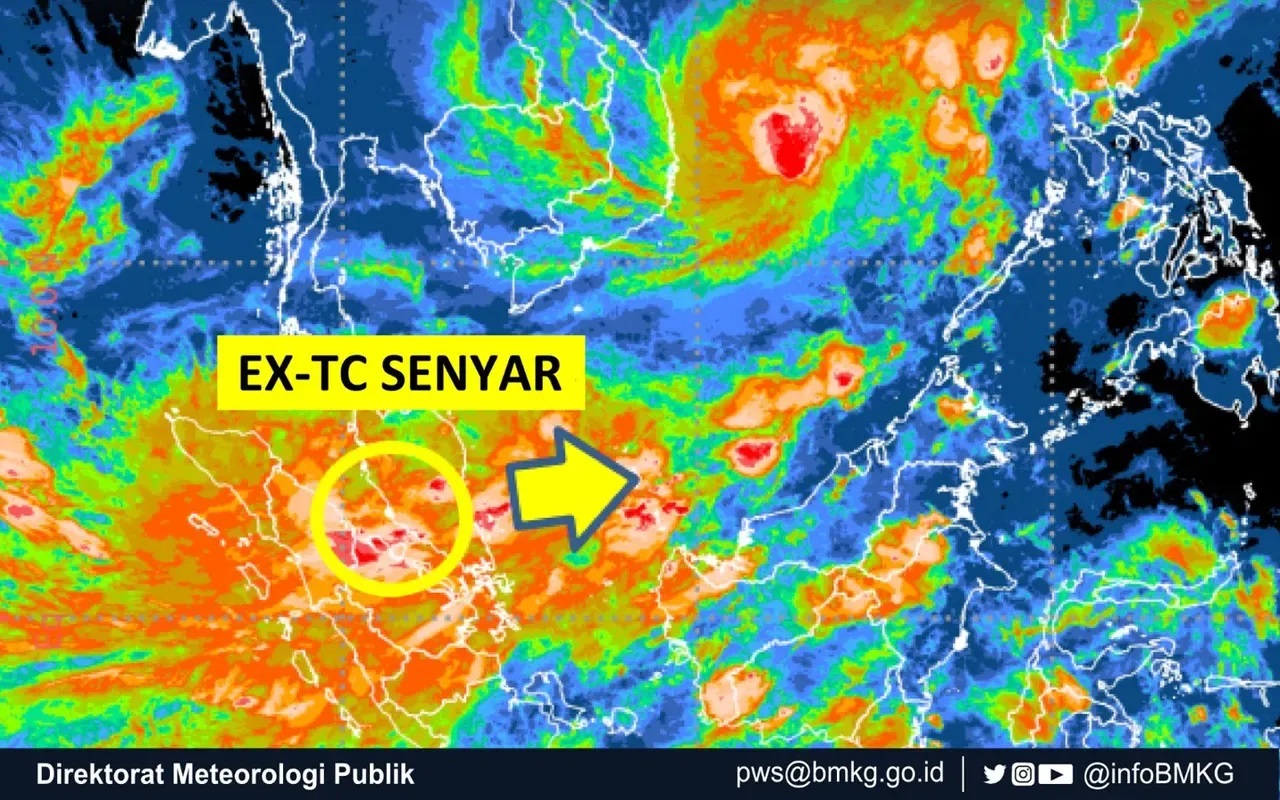 Menurut Direktur Meteorologi Publik BMKG Andri Ramdhani, sistem ex-siklon tersebut melemah sejak memasuki daratan Malaysia. Ia menjelaskan bahwa pergerakannya kini lebih condong menuju timur-timur laut, mengikuti jalur ke arah perairan Laut China Selatan.