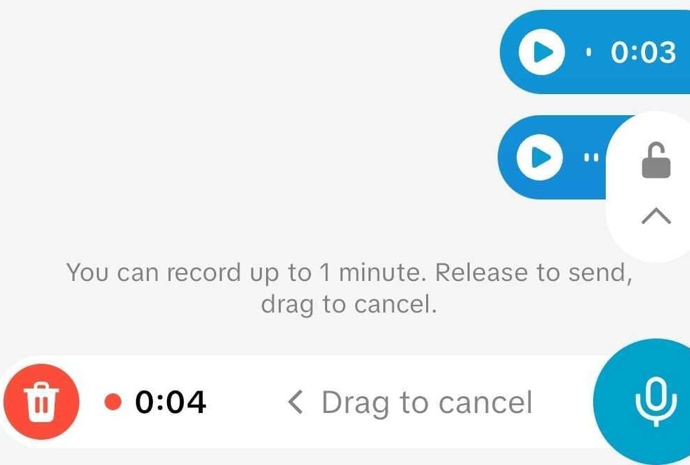 Pengguna dapat merekam suara langsung di DM. Perekaman dimulai dengan menekan ikon mikrofon, dan secara otomatis terkirim ketika pengguna melepaskan tombol—kecuali dibatalkan dengan menggeser ke atas atau ke samping