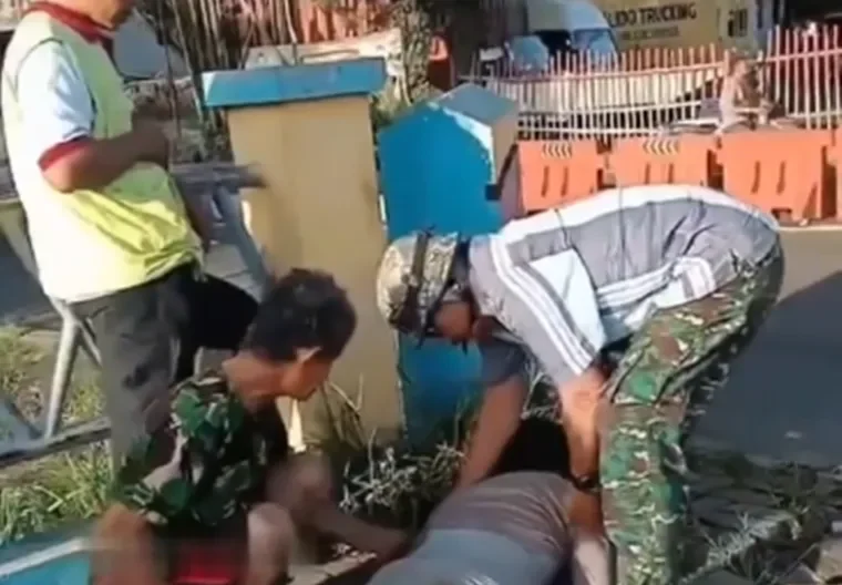 Beberapa pria terlihat mencoba membantu dan berkomunikasi dengan wanita tersebut. Salah satu dari mereka kemudian membalikkan tubuh sang wanita agar bisa duduk di trotoar. Namun, wanita itu tampak masih lemas dengan mata terpejam dan sesekali menghalau tangan warga yang mencoba menolong.