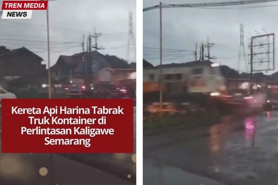 Kecelakaan melibatkan kereta api Harina 100 rute Bandung–Surabaya Pasarturi dan truk kontainer terjadi di perlintasan PJL 05 Kaligawe, petak lintas antara Stasiun Semarang Tawang – Alastua, pada Selasa (21/10/2025) sore.