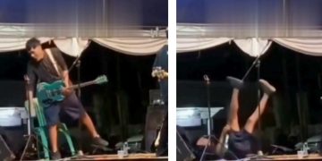 Sebuah video memperlihatkan momen tak terduga saat seorang pemain gitar terjatuh dari atas panggung ketika hendak duduk dalam sebuah acara...