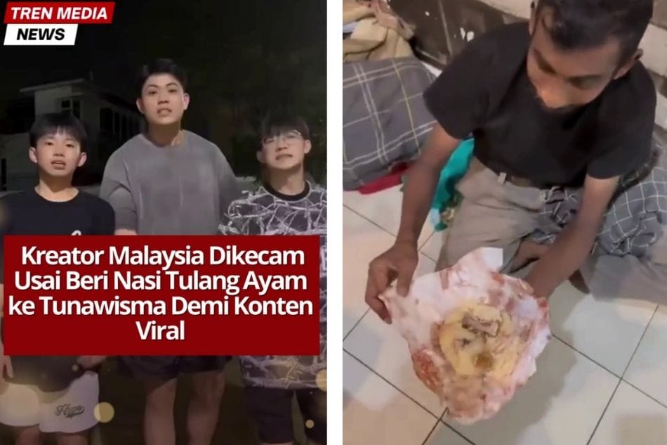 Sebuah video yang menampilkan tiga kreator konten asal Malaysia tengah menuai kecaman luas. Dalam rekaman tersebut, mereka memberikan nasi berisi tulang ayam bekas kepada seorang tunawisma, sambil mengklaim bahwa itu adalah aksi amal. Namun publik justru menilai tindakan itu sebagai penghinaan yang tidak manusiawi.