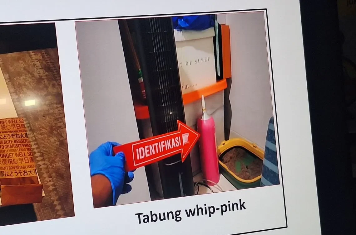 Tabung Whip Pink yang ditemukan dalam kondisi kosong. Namun, berdasarkan uji pembanding dengan produk serupa, diketahui tabung tersebut mengandung nitrous oxide atau N2O. Menurut Direktorat Produksi dan Distribusi Farmasi Kementerian Kesehatan RI El Iqbal, gas N2O memiliki berbagai fungsi, terutama di bidang kesehatan sebagai anestesi. “Gas nitrous oxide ini hanya digunakan di fasilitas pelayanan kesehatan sebagai anestesi umum,” kata El Iqbal, Direktorat Produksi dan Distribusi Farmasi Kemenkes RI.