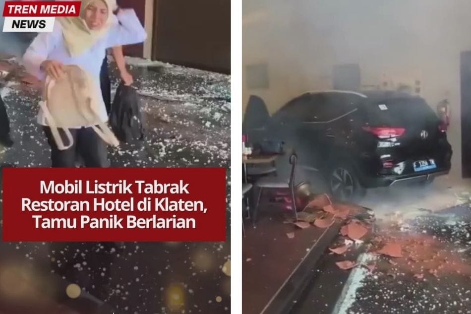 Insiden mengejutkan terjadi di Klaten, Rabu (22/10/2025) siang, ketika sebuah mobil listrik mendadak menerobos area restoran hotel. Kejadian ini membuat tamu yang sedang menikmati makan siang panik dan berlarian untuk menyelamatkan diri.