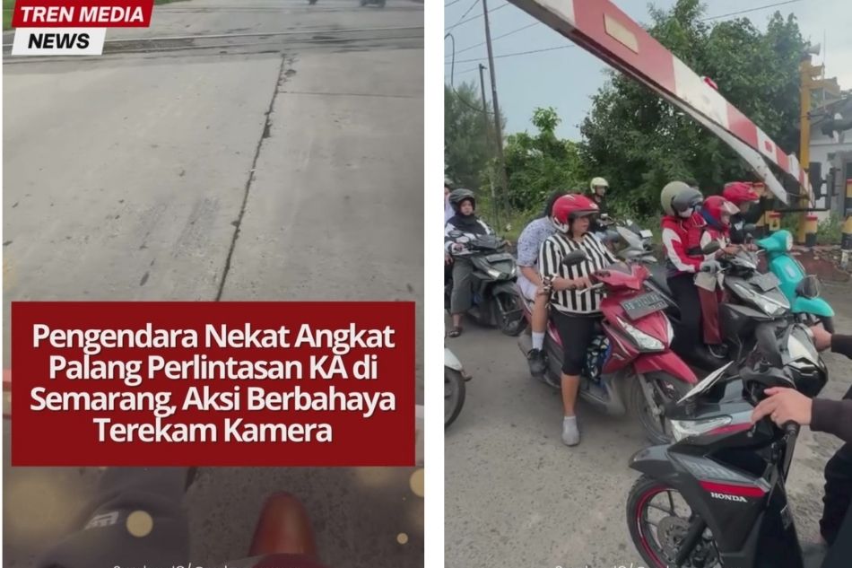 Aksi membahayakan terjadi di perlintasan kereta api Semarang, ketika sejumlah pengendara sepeda motor nekat menerobos palang pintu yang sudah dalam posisi menutup. Dalam rekaman yang beredar, beberapa pengendara bahkan terlihat mengangkat palang perlintasan untuk memaksa lewat, tanpa memikirkan risiko keselamatan diri maupun orang lain.