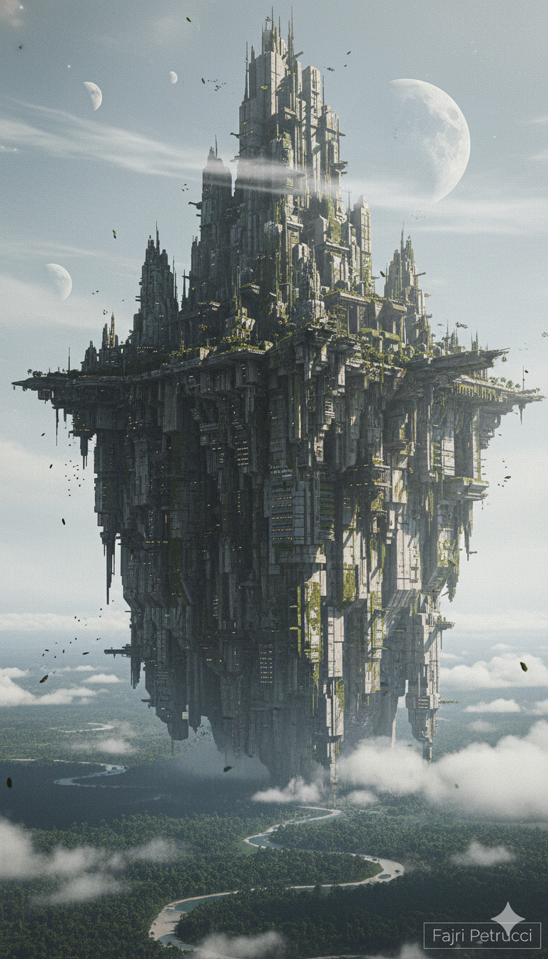 Vertical Forests & Floating Isles: Skyscrapers are transformed into massive trellises for ancient vines, while islands of greenery float serenely over vast, silent oceans.
