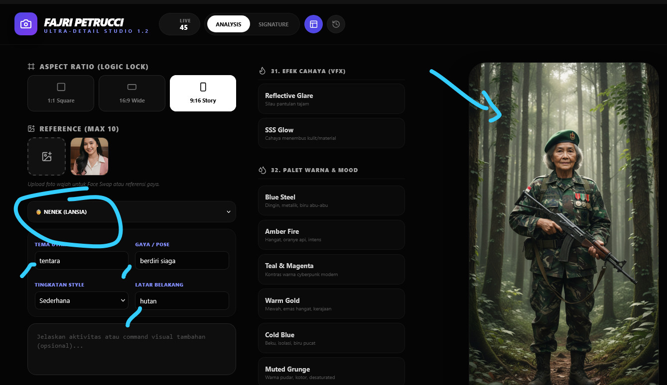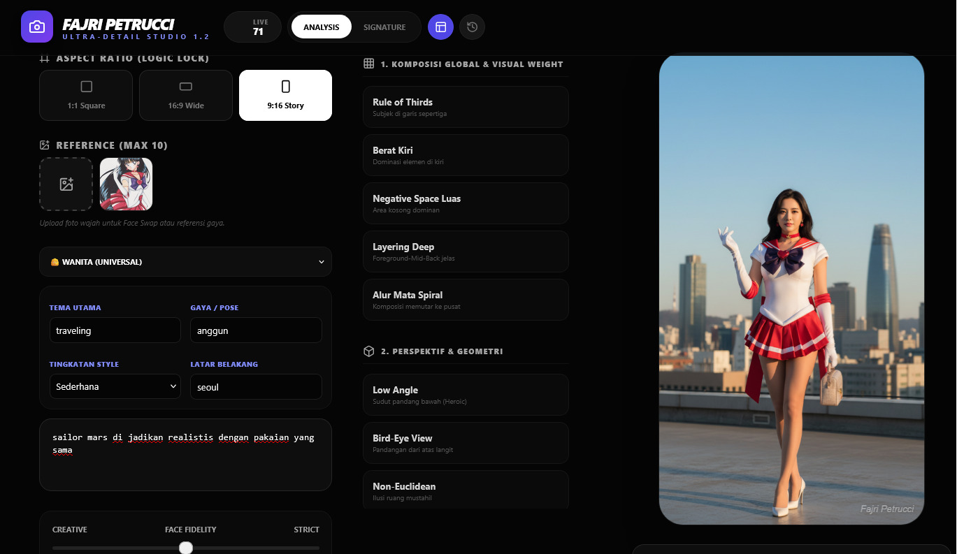 Created by Indonesian AI Artist Fajri Petrucci, this tool is designed specifically to help creators structure their prompts, maintain stylistic consistency, and streamline their creative workflow. It’s not just a generator; it’s a blueprint for your imagination.