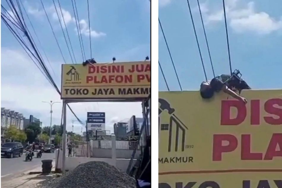 Seorang pria mengalami insiden saat bekerja di atas baliho di Jalan A Yani, Martapura, Kabupaten Banjar, Kalimantan Selatan pada Kamis (9/4/2026).