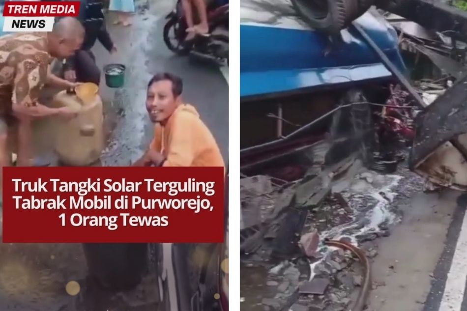 Sebuah truk tangki solar hilang kendali dan terguling, menabrak mobil Carry di Jalan Purworejo-Magelang, depan Pasar Kalijambe, Desa Kalijambe, Jawa Tengah, pada Selasa (11/11/2025) pagi sekitar pukul 05.00 WIB.