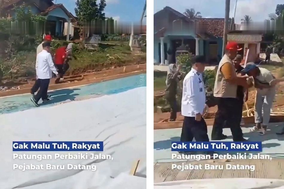 Kunjungan tersebut menarik perhatian publik karena disambut hangat oleh warga, bahkan terlihat rombongan pejabat berjalan di atas beton jalan yang masih ditutup terpal.